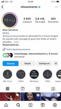 A page from the social media playbook of Miss Universe. Standing currently at 5,6 million Instagram followers, the social media platform plays a big role in MU’s social media strategy. Miss Universe consistently directs their Instagram followers to their bio, to download the official pageant app.